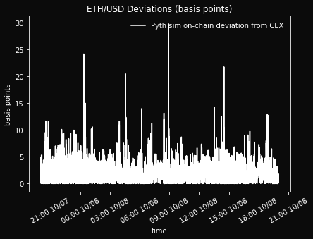 10/7 8:00 PM - 10/8 8:00 PM. During this subperiod, Pyth simulated case avg. deviation is $0.22 (1.6 bps).